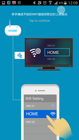 因為是第一次使用,手機連接到RealShow真享秀手機影音棒後,會先進行RealShow真享秀手機影音棒Wi-Fi連接設定。