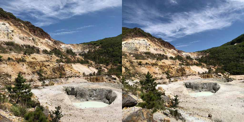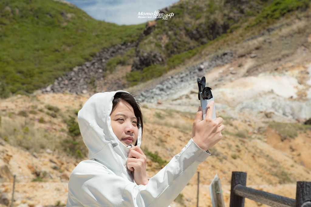 火山口硫磺味道很重,景緻很壯觀!我也忍不住再次加上了廣角鏡拍攝全景,將眼前的美景全部記錄下來~
