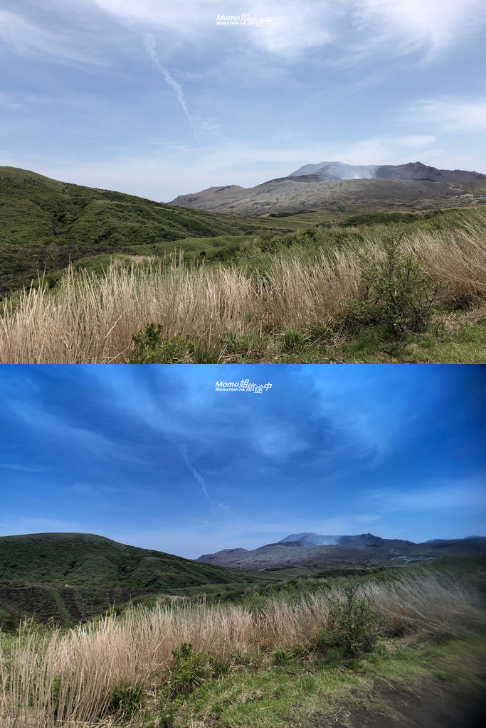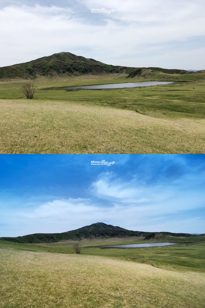 而在這次九州行程中,往阿蘇火山的路途經過『草千里』。一整片的草地好療癒啊!但當天其實天空沒有很藍,這麼綠油油的一片,就是要搭配藍天啊~