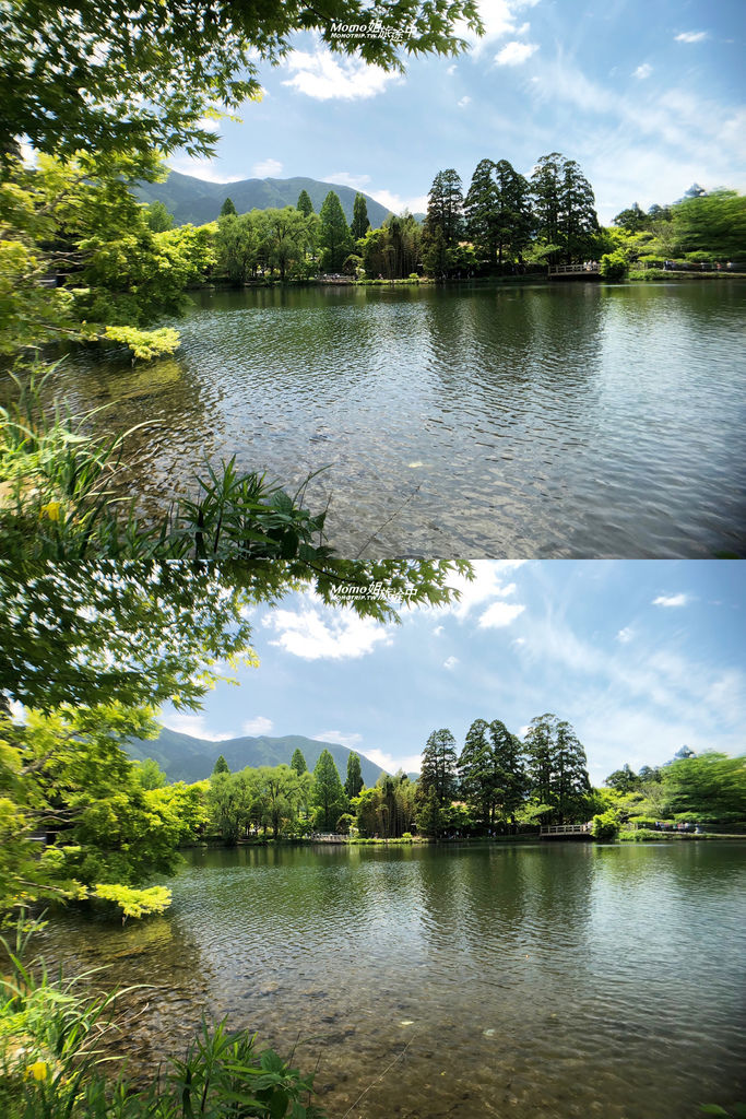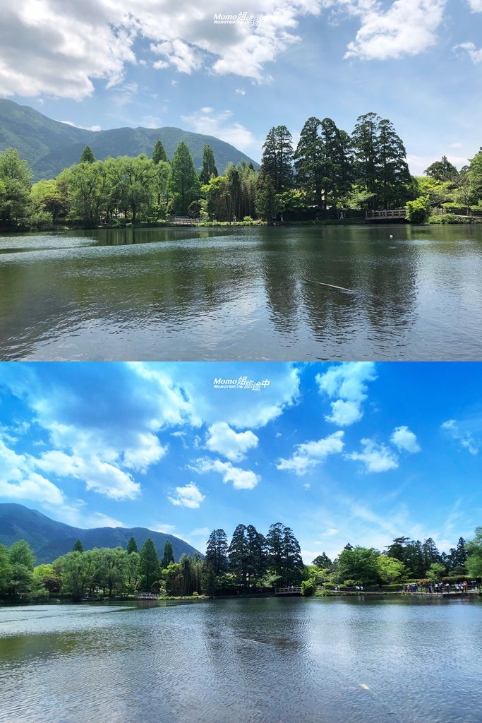 5月初前往『九州湯布院』時,碰到非常好的司機,一路上帶我們去好多由布院的經典景點,第一個景點是『金麟湖』,湖面好廣好美啊!手機搭配上廣角拍攝超美!