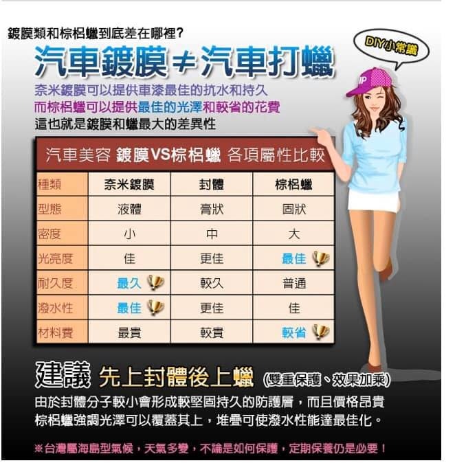 樓主如果比較懶洗車,用封體稱比較久