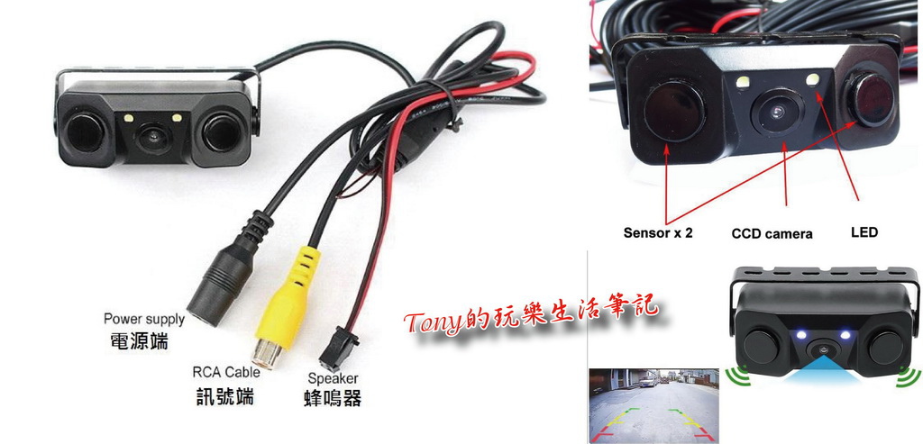 ▲最後我還是投降了,實在是找不到方式可以在我車上現有的設備下去小修改就做到我想要的功能,那就上網去找了幾個後方顯影的鏡頭來參考。有的體積很小,有的有帶燈光(不過我買來試過的感覺是……),還有更好的是有帶倒車雷達的。重點是這些都是AV端子輸出,訊號很好處理(找台有AV輸入的螢幕就可以用了),缺點會是解析度不是那麼高。而且這些鏡頭都不貴,就算有帶倒車雷達的也不過是千元以內。