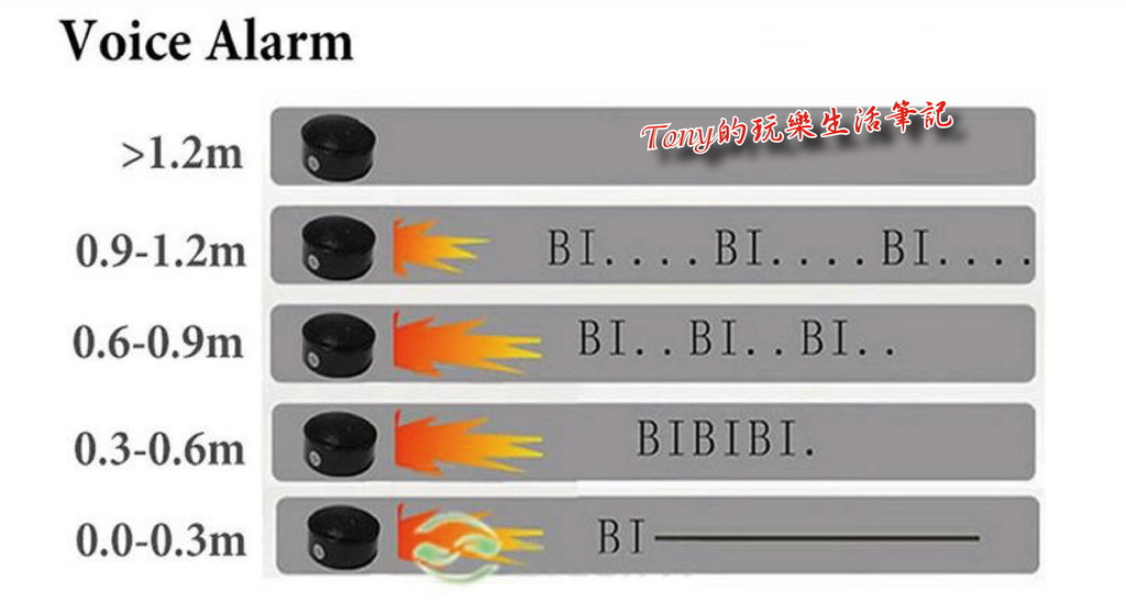 ▲這種有倒車雷達的,一樣會是依照後人物的距離,會有不同的警示音頻提醒,跟現有的各家原廠汽車倒車雷達是一樣的。