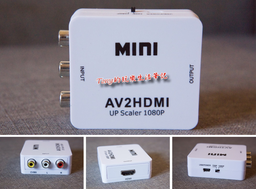 ▲還好這個AV轉HDMI的轉接器不貴,但得多裝個USB電源給它用。因為鏡頭跟螢幕的解析度都不高,所以調到720P或1080P都是一樣的效果,但調到1080P時,會多耗一點點電流。