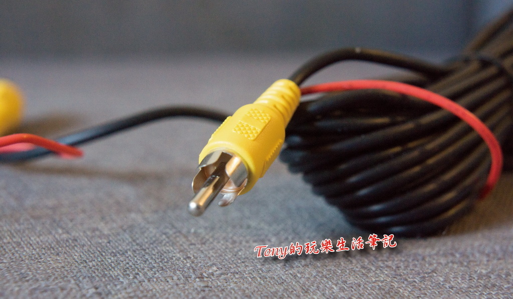 ▲夜視版的小蝴蝶鏡頭,外觀看起來真的沒甚麼。以小客車來說,需要扳動的角度不大,還不難,鏡頭的後面出線是兩條,一條是AV訊號輸出,一條是12V的電源輸入。不過原本是設計給倒車使用的,電源線是接到倒車燈上,所以電源線長度不長,我是要全時都能顯影,所以另外把電源線加長倒車內來接電。而AV訊號線有一條6米的延長線,所以這條AV訊號長度是足夠用的。