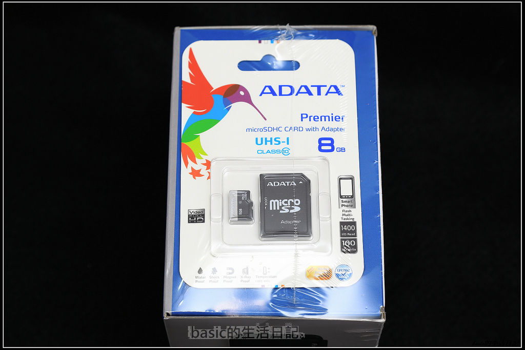 隨盒裝附上了ADATA的CLASS 10 8GB記憶卡 , 採用Micro sdhc規格