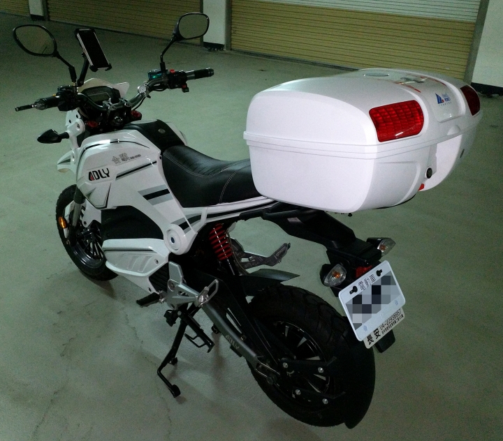 昨天牽回家了,控制器也直接換成了魔力士72200,不過電池維持原廠的72v 40AH不變,控制器換成72200後,由於原廠所配的儀錶時速無法正常顯示會亂跳,老闆又去找可以支援霍爾訊號的儀錶來裝,算是一家蠻負責的店家。而跨騎型的沒置物箱,只好犧牲色相裝大號一點的尾箱。