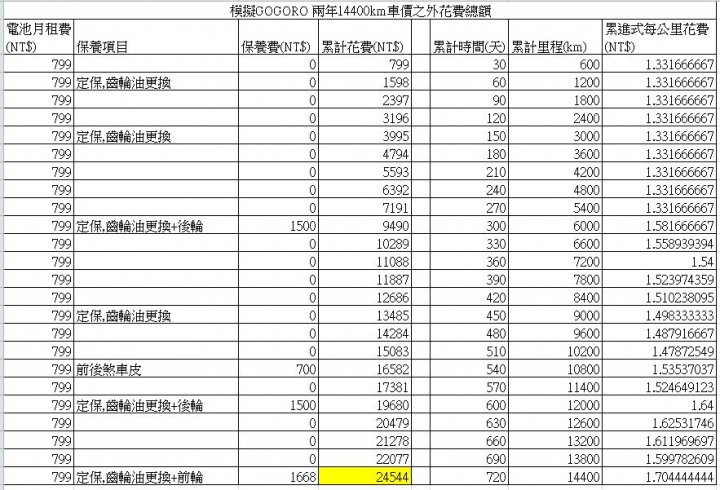 三代競戰 & Gogoro 為本人都有在騎乘的交通工具關於本文的這個疑問本人也在許久前使用自己的行車模式模擬了一下兩台車的使用狀況給自己的結論是GGR在兩年後,過保後,每公里花費會跳很快三代競戰的話,每公里花費的曲線都滿平順的,估計可以撐到3年後每公里花費才有感給大家參考^^