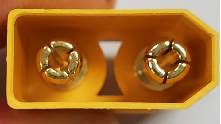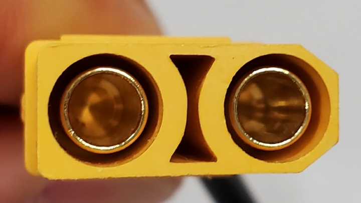 一般在"正常"的狀況下用公頭與母頭是沒有差別的,偏偏問題就出在"意外"的狀況下。當塑膠殼受不當外力導致公頭電極傾倒短路, 這時就會有精彩的火燄秀。所以一般電池端的接頭內,不論是公頭或母頭,都至少會有隔板的結構將兩電極隔開來。以照片來看,個人還是建議要對調。