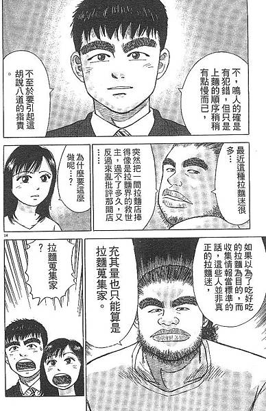 雖然標題打的是這個,但我這裡其實是想談漫畫讀者的心態。下面兩張圖取自河合單和久部綠郎合作的美食題材漫畫『拉麵王』,裡面有提到以蒐集情報為目的人,並不是拉麵迷,而是拉麵蒐集家。其實這個概念也可以轉換成現今許多漫畫讀者,因為過分接收外界的訊息,像是銷售成績、獲獎有無以及普遍評價等,卻忽略了作品本身最初給人們所帶來的感動與喜悅,是否充其量只是個「漫畫蒐集家」呢?