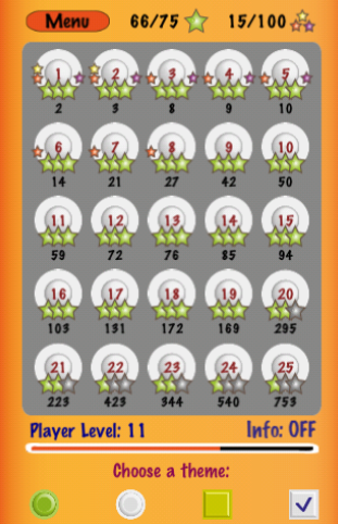 這個遊戲有25個關卡,在選單畫面中,可以看到有25個圓圈