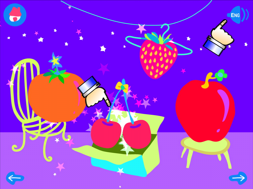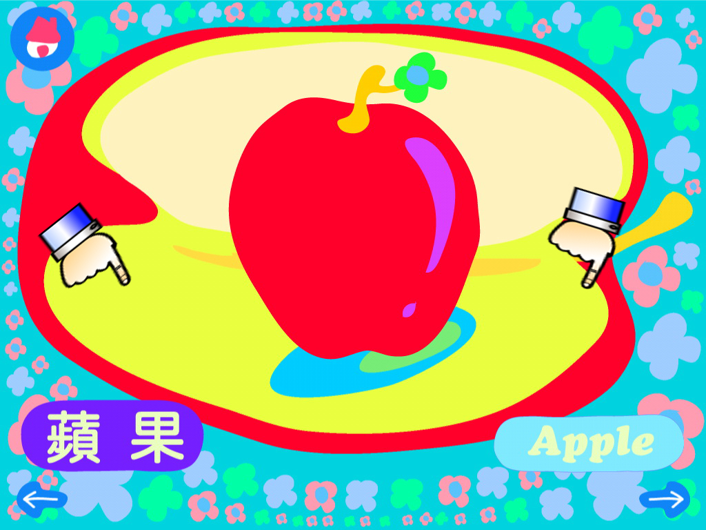 操作也是跟動物識字卡一樣 - 左半邊是中文發音, 右半邊是英文發音