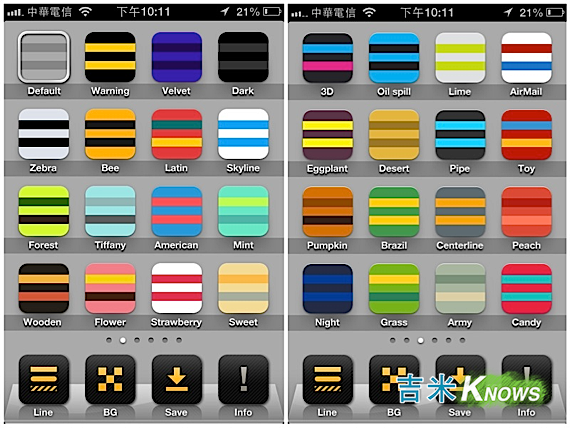 點擊其中一款圖示後,背景顏色馬上就會對應而改變,可以多試試幾款,直到有自己喜歡的顏色為止。 |