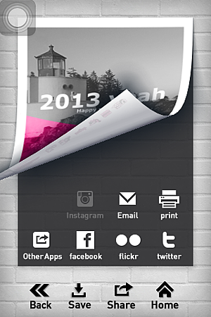 完成之後的照片海報,可透過Email、Instagram、無線分享列印、Facebook、flickr、twitter等方式分享或儲存在手機相簿中。