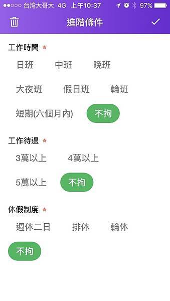 人生總有需要換工作的時候,但幾乎都是逼不得已最近幫著老爸找工作,他開給我唯一的條件是不能離家裡太遠老一輩的找工作習慣翻報紙,然後再一家家的親洽或電聯真的要感謝這app,替我省下超多時間只要開啟『定位找工作』就可以搜尋到附近的職缺※每一個橘色圈圈就是一個工作機會點進去喜歡就可以直接應徵,前提是要貼心的幫長輩建立好履歷表真的是比報紙有更多的工作選擇!!改版後也有幾個不錯的進階功能:依照待遇/工作時段/休假制度進階的搜尋這樣想找週休二日工作的求職者也能方便篩選了ios版→ 1111找工作app