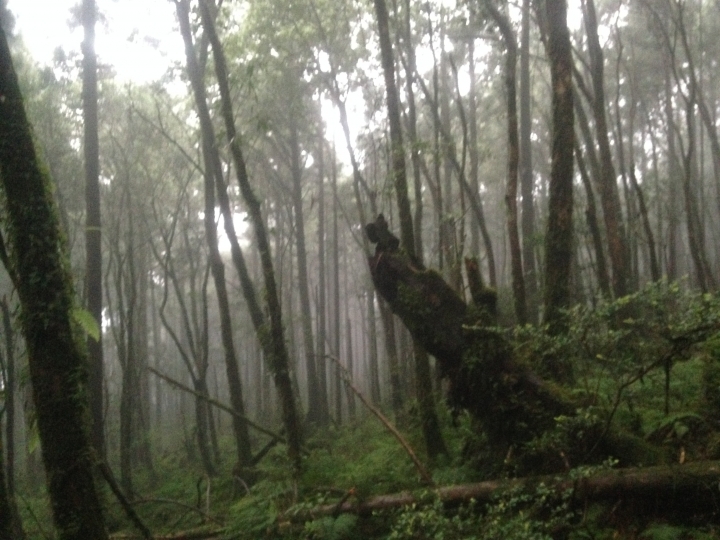 ariocarpus wrote:又見到鄒仔的圖文了...(恕刪) 話說,松羅湖算滿水位了,近期要搭營的,以鞍部為考量,腹地不太夠唷。明知山有雨,偏向雨山行!先來張優雅的!47分鐘到3.3K空地標牌,希望今天可以80分達陣。還可以。只有沾到一點泥巴(小腿肚)。優雅優雅,遇到人要「揮」去裝更優雅。結果接下來下大雨變溪河泥路!僧人僧人,要雨天欣喜晴天流涕!終點標牌無法靠近,花了96分鐘,殘念!還OK的啦。所有裝備,散步運動不用帶太多,緊急過夜,敢不敢?若真的要緊急過夜,大概只能找樹洞過夜。本來要進行一個心理測驗,我們總會攜帶很多用不到的東西,所以想甚麼都不帶,又想手機是否需要?萬一發生狀況呢?有時候因為你不預設反而不會用到,因為預設反而有所依賴,而沒有手錶,所以要帶手機,甚至用來航程記錄(後來開 Runtastic),那除手機呢?我想雨衣最重要,但也想過頂多就淋雨,為何要因為怕雨而躲藏?但淋雨會比較累,所以帶了輕便雨衣,後來又路上買運動飲料,因為兩瓶特價 39,兩塊餅乾,出發時想到萬一真的刁山?那就帶一顆打火機囉。是有比較髒啦!入夜雨中停留迷霧森林,我喜歡這種蕭瑟冷清陰涼詭異感。回到登山口,下山花了 107 分鐘(比上山慢 11 分鐘),沒辦法,沒開燈雨夜摸黑訓練,僧人僧人!因為下雨因素,時程無法如預期,上山時間提早五分鐘左右,終點休息回程的時刻也提早五分鐘左右,但下山時間比原本慢了 36 分鐘。除了下雨因素,另外入夜森林陰暗,步道變水階,都非常難提升腳步頻率。然而如何安全踏下前腳,轉移重心就是一項考驗,雖然說一定要實事求是,但在昏暗黑壓壓之下,人還是會自行建構山徑的起落與地面狀況,所以只能在腦海建構與模糊視覺間尋求平衡。松羅湖主要山徑上有些泥濘,所以旁邊會有較乾燥的路線,但是在黑夜之下,走這種起落又植被的小徑,腳踝必須強健,重心轉移必須緩慢,所以較快速且安全的方式,反而是看較明亮的步道,然而那意味著你必須踩水階而行,而在樹根糾結處,你必須判斷,踩踏在部分土石與樹根交接處(樹根最滑),而在步道前段森林處,整個陷入黑暗,你必須透過餘光(桿狀細胞)尋找山徑大致走向,往那個方向行去,必要時低頭看最近的局部化,所以為了找尋路徑大方向,你必須稍微抬頭,而為了保有夜間視覺與判斷安全,你必須低頭,要在兩者間不斷交錯進行。黑暗中視覺低落,平衡受影響,抓起一樹枝協助平衡,有時甚至閉上眼睛,利用其它感官行走,而造林段草掩路,採用樹枝杖,上下晃動踢踏方式確定路況,心中也不預設離登山口多遠,慢慢地走安全地前進即可。