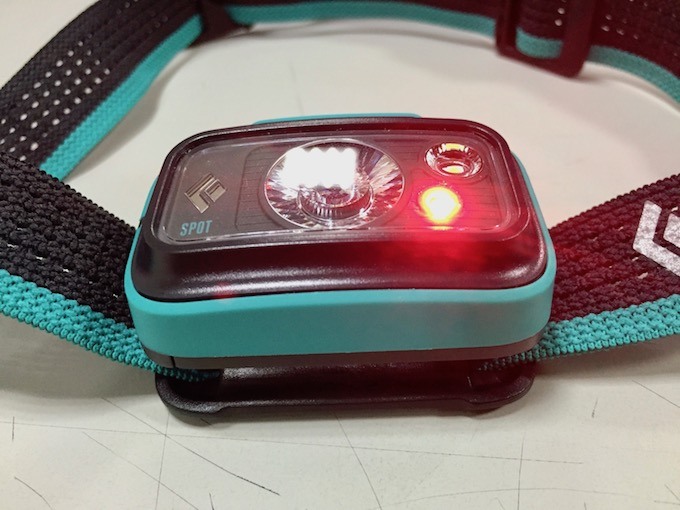 Black Diamond Spot 325頭燈頭燈50g + 含電池 = 重量84g理論值 : 最低量度200小時 最高亮度4小時Black Diamond Spot 頭燈最亮325流明 最低6流明防水等級IPX8頭燈與紙盒固定用頭帶上面2按鈕剩餘電力顯示電池室使用四號電池 X 3顆付3顆四號電池紙本說明弱光 強光 閃光 紅光主燈副燈紅燈2燈全亮Black Diamond Spot 325頭燈