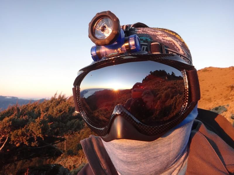陽光超強的.小施準備下雪用的雪鏡派上場了.這讓我想國小自然課本的阿姆斯壯登月球.