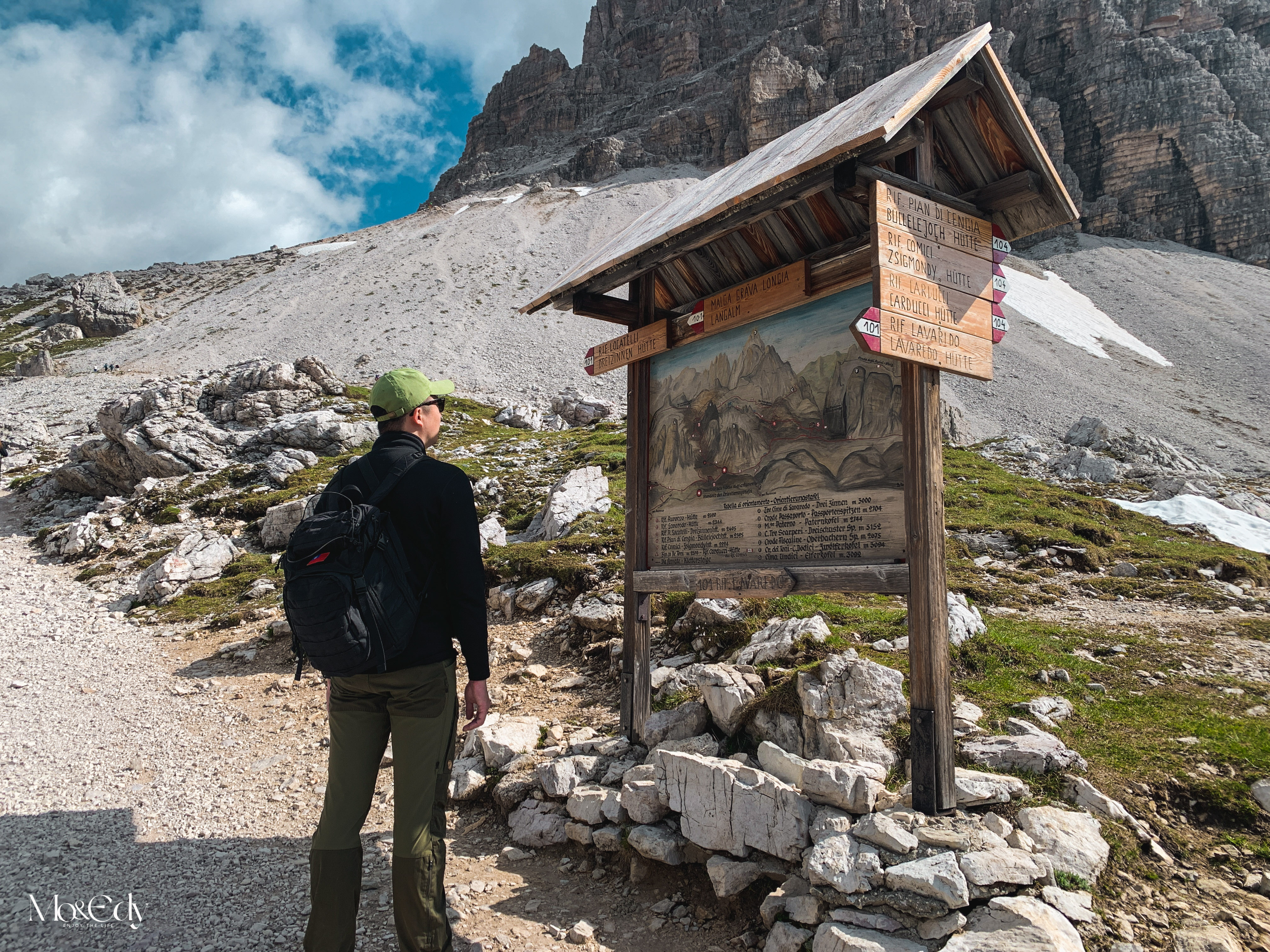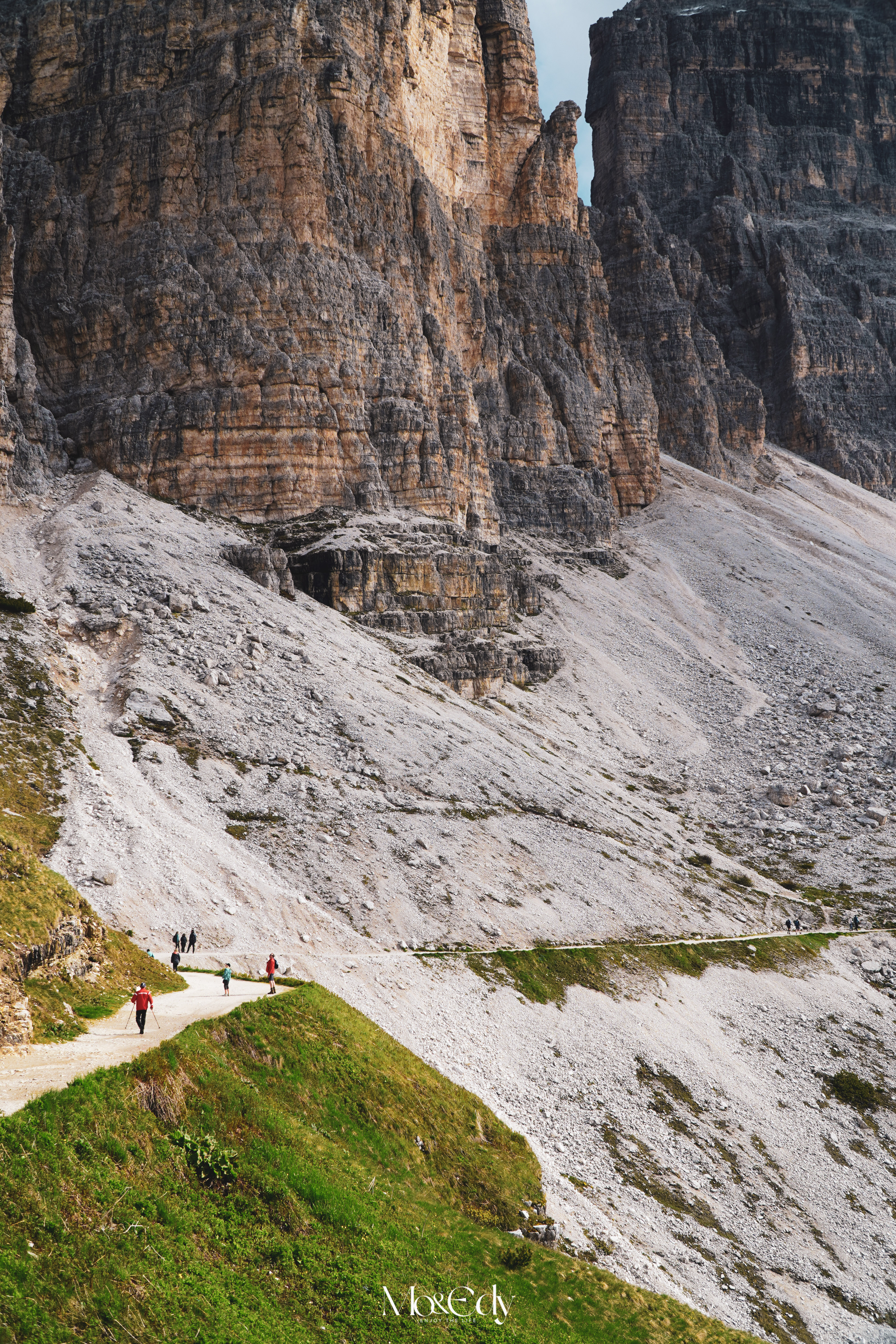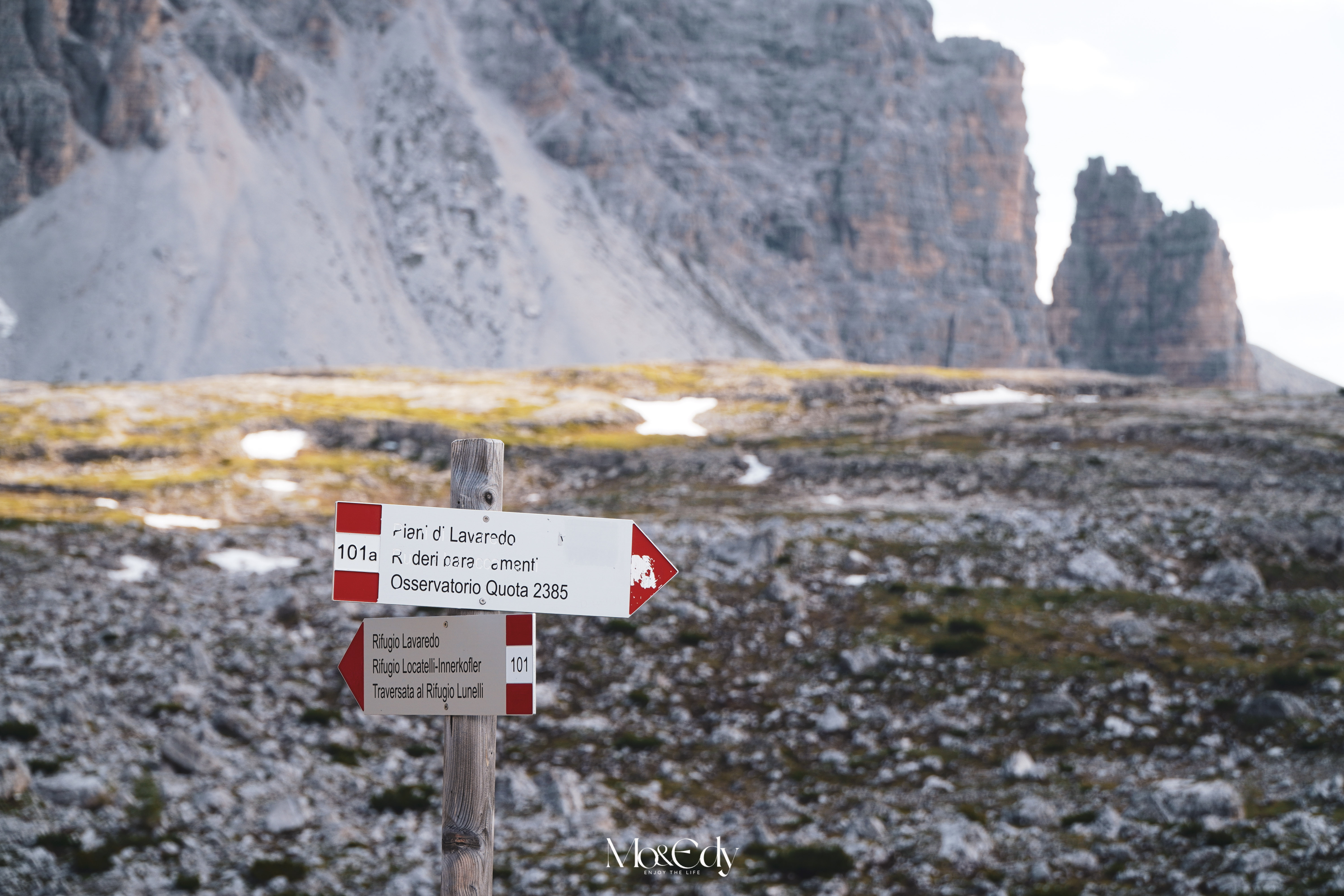 順時針的路線:Rifugio Auronzo(停車場旁的山屋)– Rifugio Lavaredo(山屋) – Forcella Lavaredo/Paternsattel(拍照點) -Rifugio Locatelli/Drei Zinnen Hütte(山屋) – Malga Langalm(山屋)– Forcella del Col del Medo(拍照點)–– Rifugio Auronzo