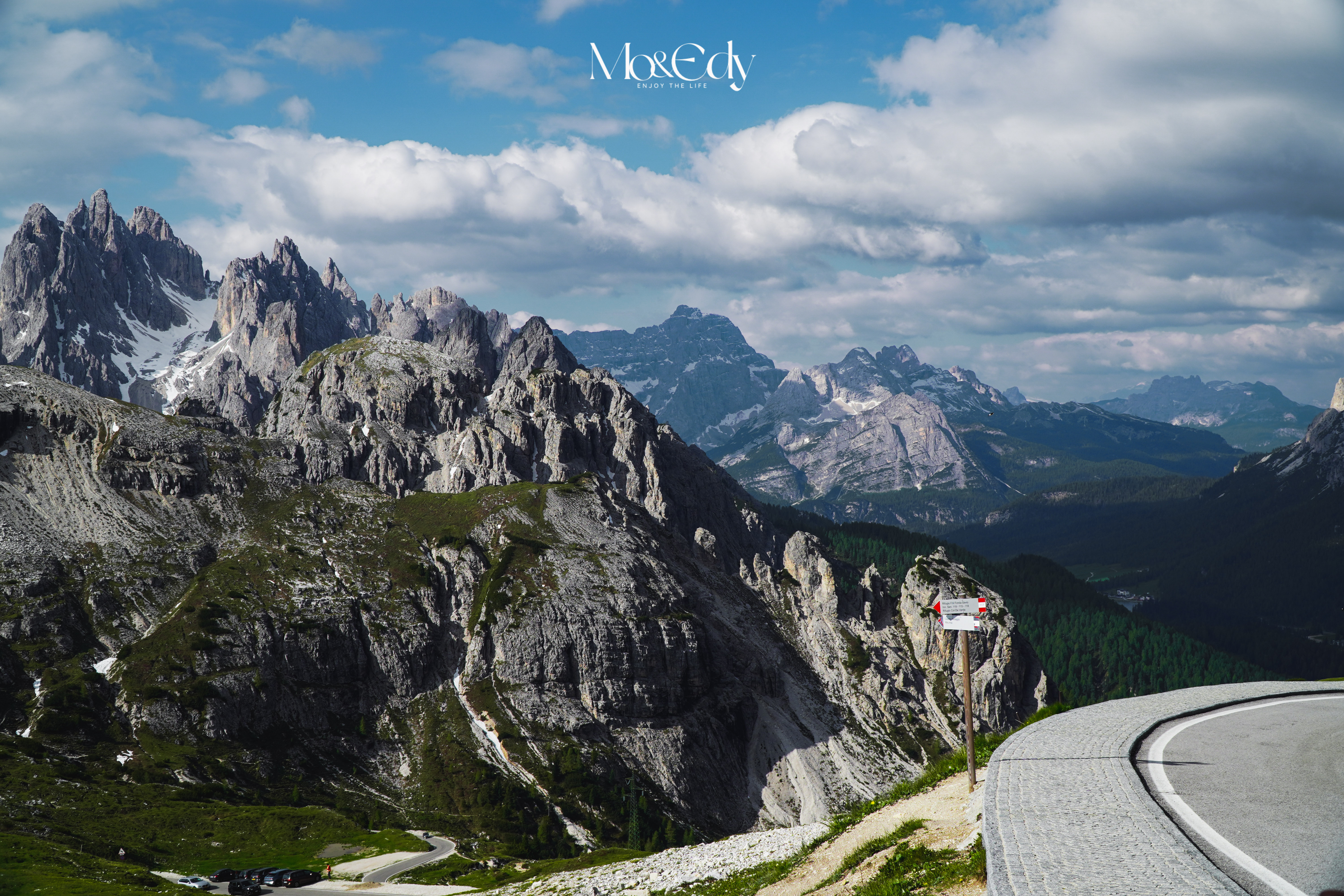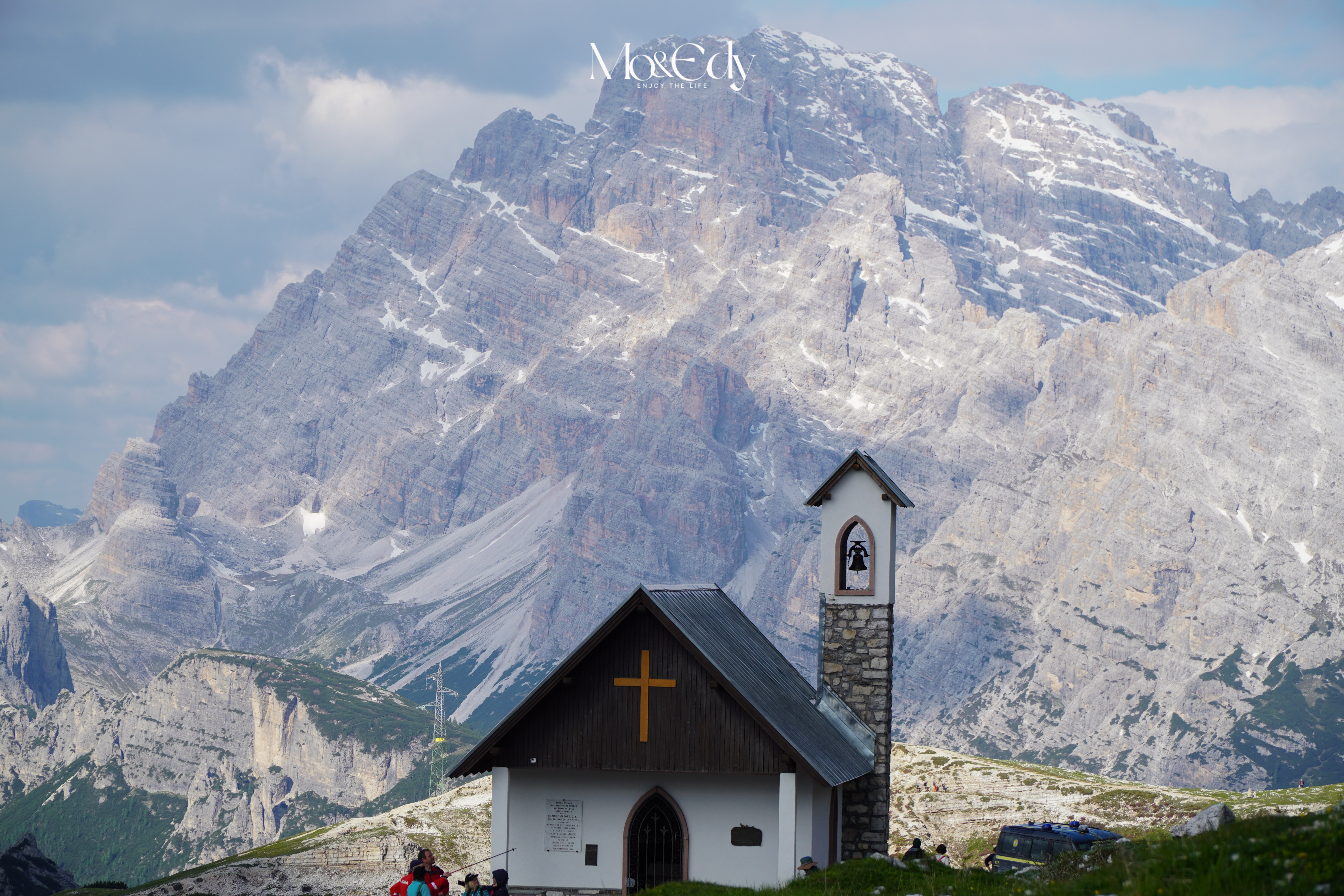 這日要走的路線是位於多洛米提東部區的”Tre Cime di Lavaredo”(拉瓦雷多三尖峰),是十分著名的健行路線之一。E在研究行程時,被這個比大霸尖山還多兩個夥伴的山尖吸引,勢在必行,甚至在出發前幾周不斷地欣賞YOUTUBE的即時攝影畫面,誓言到時候要攝影機揮揮手,以證明到此一遊。