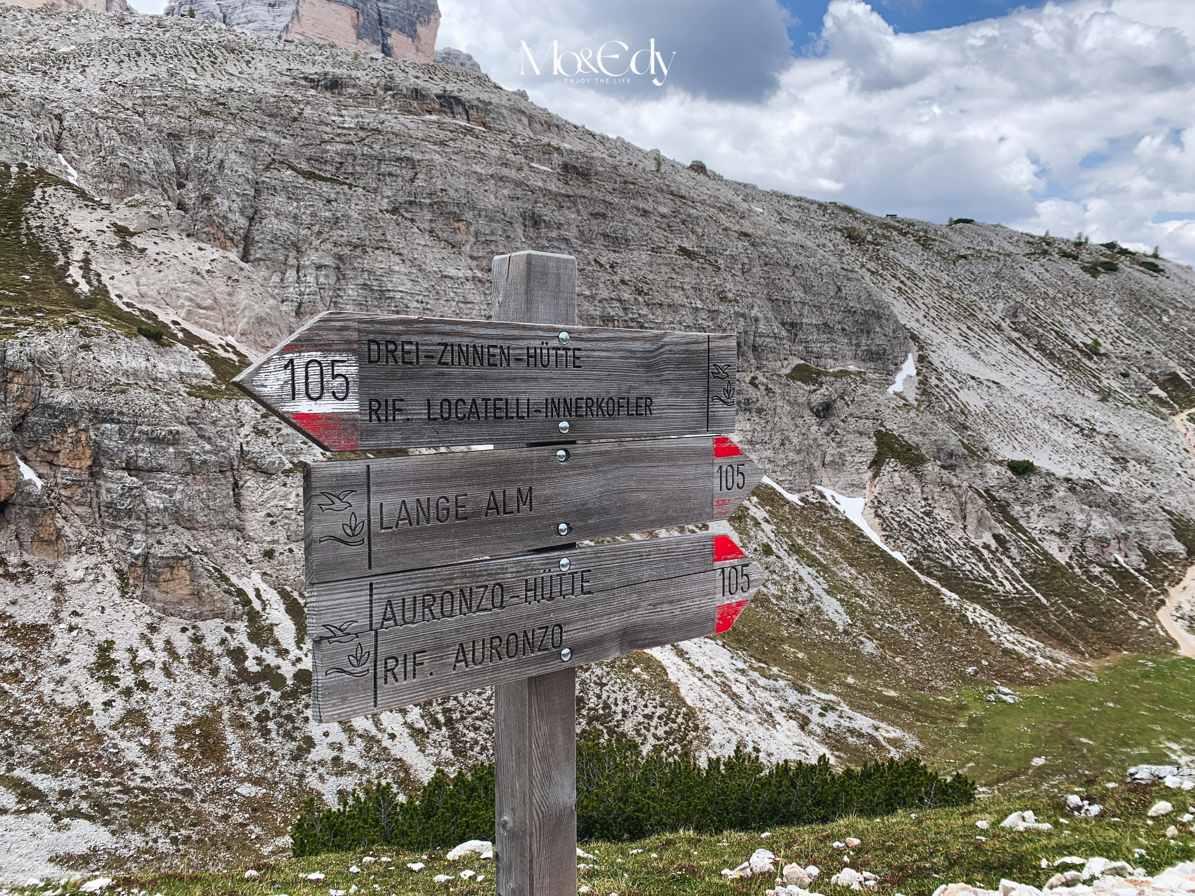離開 Locatelli/Drei Zinnen Hütte我們要接續105步道走完我們的O型路線。