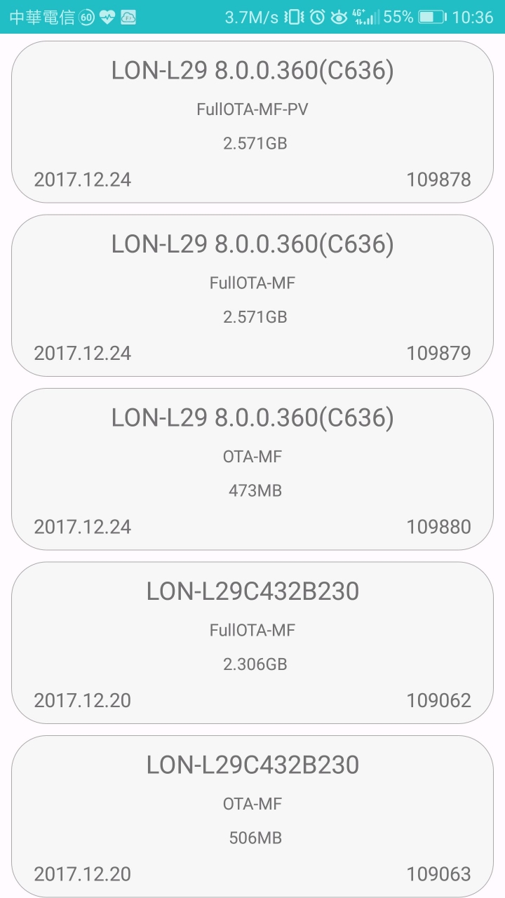 阿huang wrote:LON-L29按照日...(恕刪) 查到這幾個,12/24,8.0.0.360(c636)那個,但簡查固件說不允許安裝。fullota-mf-pvfullota-mf有pv,沒pv,差在哪裡呀?