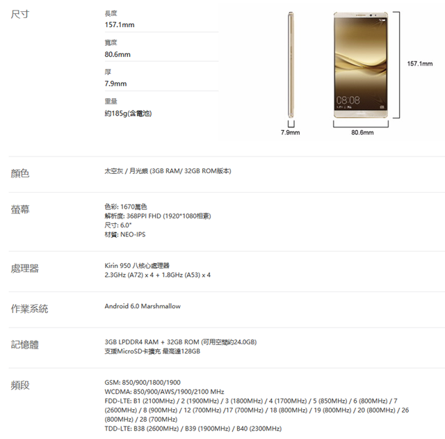 01編輯幫大家整理了HUAWEI Mate 8軟硬體規格重點。