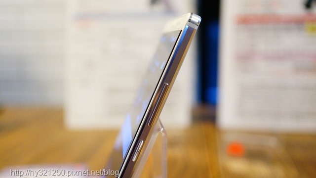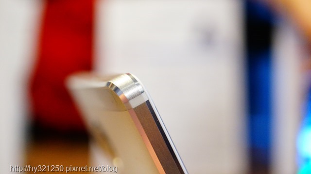 再近看一點,Mate 8側邊的金屬邊框除了削邊與四角採圓弧造型設計外,還使用髮絲紋增加手機質感。