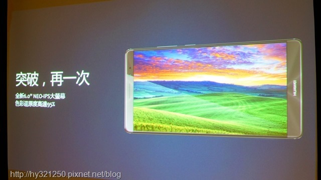 Mate 8使用解析度Full HD(1920x1080)的6吋NEO-IPS螢幕,色彩還原度可達95%。