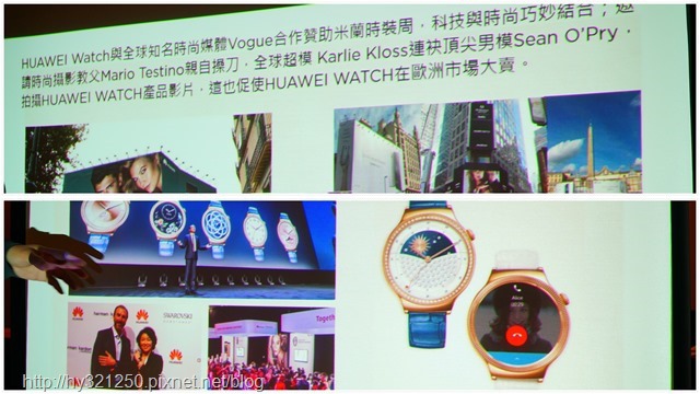 除了主角HUAWEI Mate 8旗艦機,華為產品PM另外也簡單地介紹它們家的智能手錶HUAWEI Watch。而HUAWEI Watch在主打科技之外,也致力結合時尚。除了廣告請時尚圈人士與超級男模拍攝,也陸續跟時尚圈廠商,像是跟施華洛世奇合作推出鑲有施華洛世奇水晶的HUAWEI Watch,讓使用者有更多選擇。