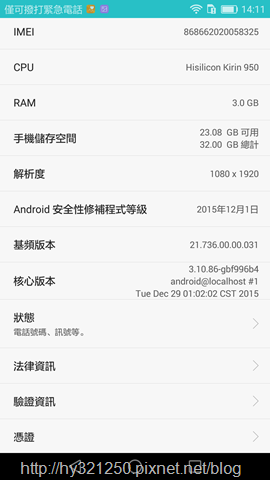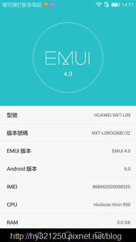 在觀看這支Mate 8的型號資訊時,也可以看到搭配的是自家的Emotion UI 4.0版本介面。