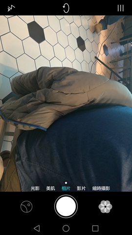 對我自己來說,體驗的時間再少,手機的相機功能是一定要看的。所以進到相機主畫面後,看到分為光影、美肌、相片、影片與縮時攝影五大項目,讓使用者可以快速點選拍照或錄影。