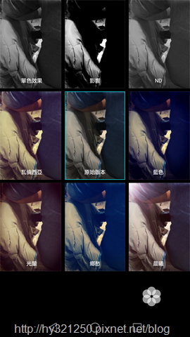 拍照效果,可選擇單色效果、影響、ND、瓦倫西亞、原始版本、藍色、光暈、鄉愁與晨曦九種效果來拍照。不過,這裡有一個小bug,就是橫拿Mate 8拍照要選擇拍照效果時,選單還是直立顯示,不會跟著轉為橫向顯示。