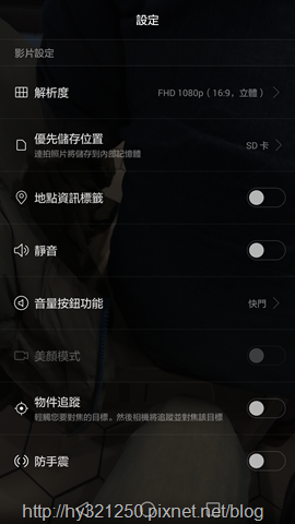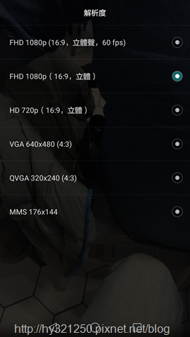 影片項目的的設定選項。其中,影片解析度部分最大只到Full HD(1920x1080)。