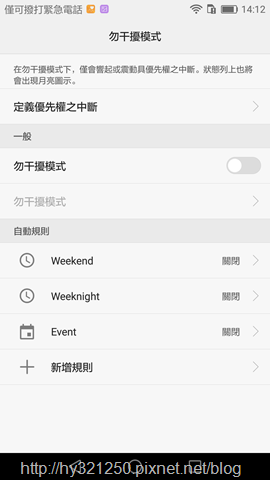 設定項目中的智慧型協助項目,可以幫助方便操作Mate 8。而啟動勿干擾模式,能讓使用者自訂規則,在所以規則時間區間中不會受電話干擾。