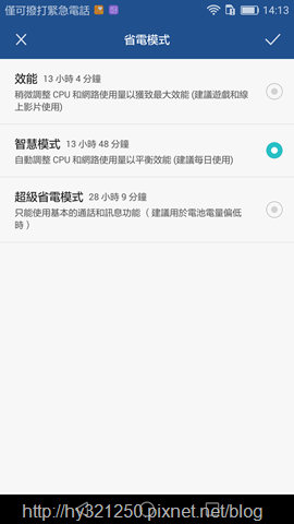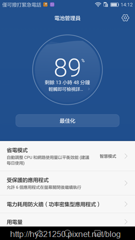 省電模式中,有效能、智慧模式與超級省電模式三種模式可以選擇。以手機當時還有89%電力來說,如果選擇超級省電模式,Mate 8可以使用28小時以上,真的蠻威的!另外,針對耗電量比較大的應用程式,可以利用電力耗用防火牆功能來進行控制。
