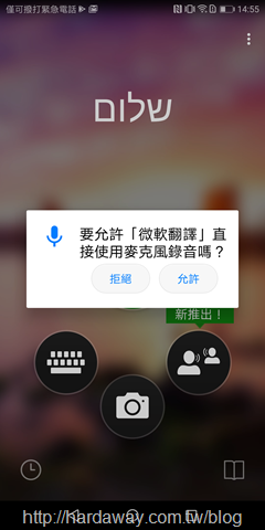 Hallo程式可透過錄音、輸入文字、照相與對話翻譯方式進行翻譯。