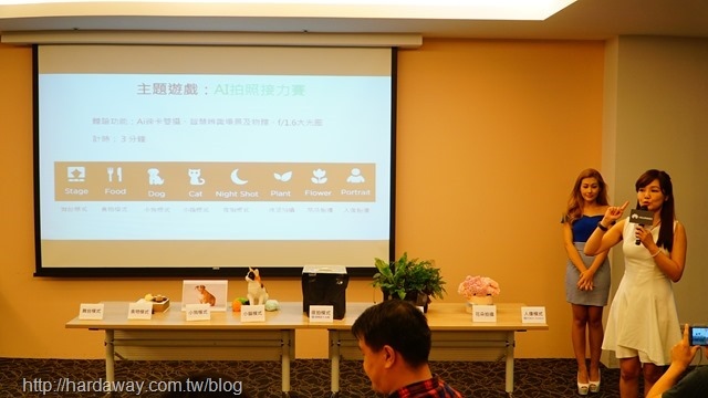 體驗時間過後,接著進行小遊戲來加深大家對Mate10系列特點印象。而第一個小遊戲,是智能拍照接力賽,以2人1組方式,對桌上擺放代表不同拍照模式的物品進行拍照,時間花費最少的組別就是優勝者。