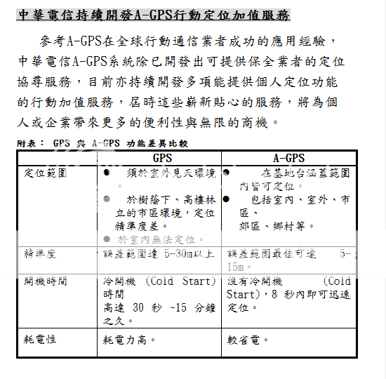 GPS有A-GPS輔助會比較快沒錯(有網路下)但是GPS就算無網路也可以定位只有A-GPS的話,沒網路就無法定位(A-GPS不一定要搭配GPS吧(有可能是透過基地臺定位)附表: GPS 與 A-GPS 功能差異比較樓主想問的就是需不需要網路才能定位吧(話說手機王的LUMIA800規格 有GPS...)