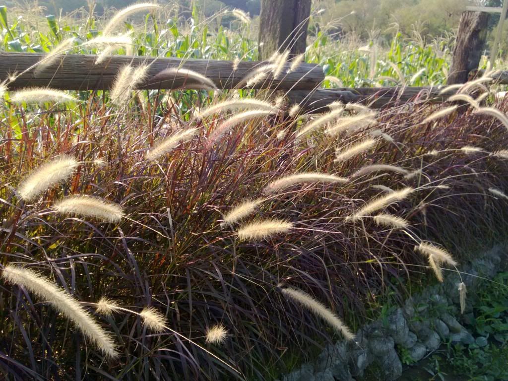 往回家路上,同樣是台大農藝系附近柵欄旁一排的狗尾草...在太陽光底下金光閃閃,我覺得很漂亮,所以就拍下來了。