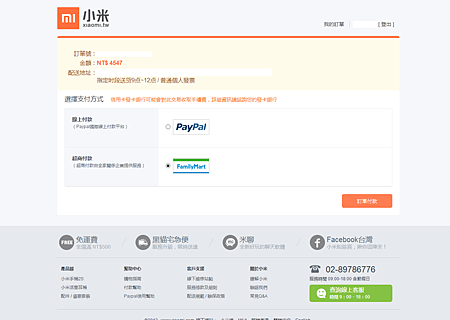 (特別一提的付款方式,今天開始小米開放全家便利商店付款囉,不用再PAYPAL了)