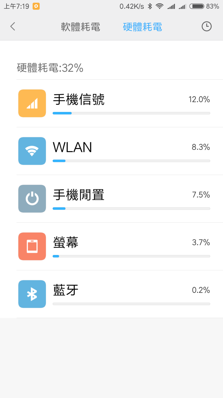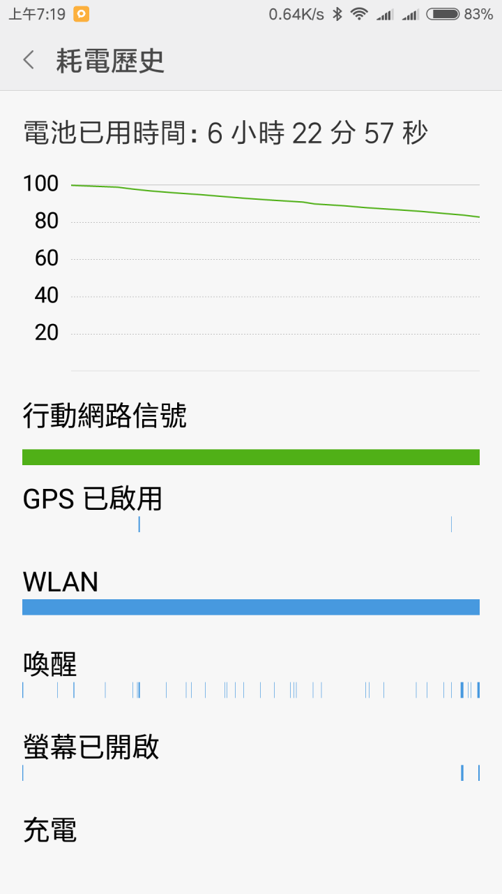 均衡模式,平常螢幕只開1/3都一樣的用法,也沒多裝APP更新後感覺耗電充電100%後拔插頭去睡覺什麼都沒做,螢幕也沒開待機6-7小時剩下80幾趴,曲線掉的有點快那個android OS不曉得是哪個程式,有點耗電