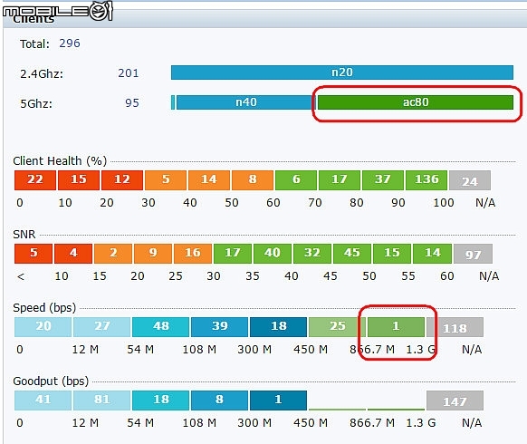 沒支援802.11ac的USER,即我手上的紅米Note 4x,可以看到雖然頻道走在5Ghz ,但Client PHY欄位是只有n 40Mhz的