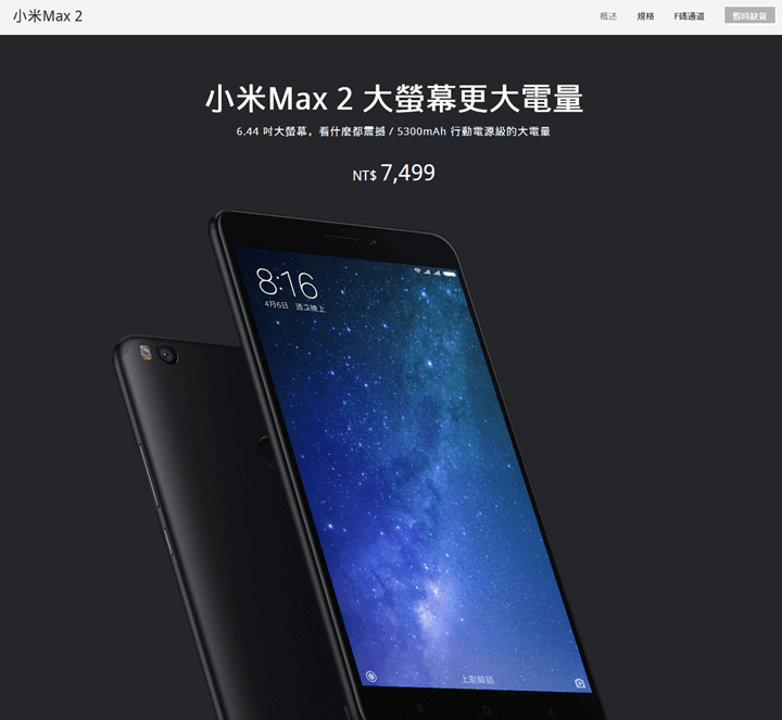 unl7911 wrote:大家有搶到小米MAX2...(恕刪) 1.小米 Max 2 的電量比上一代更加進化,從原本的 4850mAh>> 5300mAh2.小米 Max 2 支援QC3.0也具備反向充電機能,可以變成行動電源幫其他裝置充電。3.配置和小米 6 主鏡頭相同的 IMX386 感應器,支援 1200 萬畫素、F2.2 光圈、PDAF 對焦4.多了BAND8(900頻)
