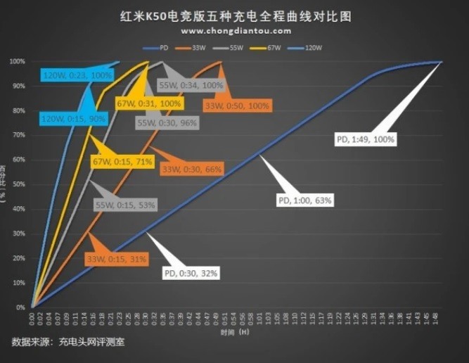 (K50一般版上限67W,K50 Pro、K50 電競版、K50至尊版則支援120w)