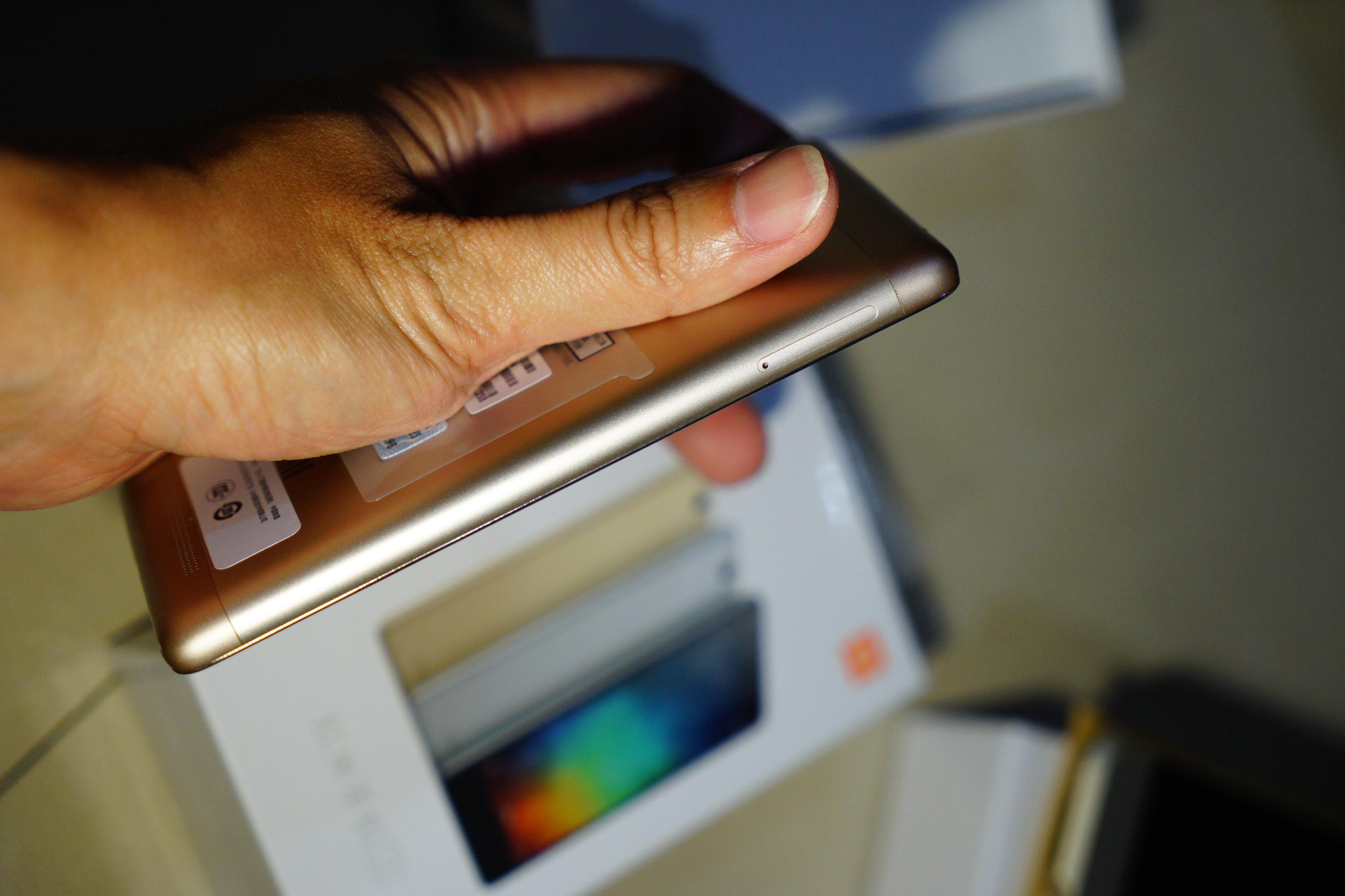如標題, 在米粉節4/6當天首發幫朋友搶了一隻經典金色版,好不容易等到發貨集貨回台, 朋友急著拿去玩, 就拍幾張外觀照片給版友分享~官網簡易規格驍龍616的CPU,比標準版還多的3G RAM,32G ROM,指紋辨識, 代價是多RMB200正面背面, 經典金色, 純色, 不同於標準版的格紋造型側面是音量鍵和電源鍵底部是micro USB另一側邊是SIM卡槽頂部是耳機孔外觀最大的不同就是多了和紅米NOTE3一樣的指紋辨識, 試了一下, 辨識速度還不錯, 輕壓秒內都能解鎖~~以上外觀純分享, 給有興趣的朋友參考~~