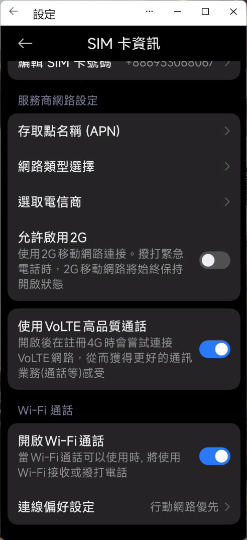 這樣主要手機才能確保吃到 VOWIFI 可以跟國內通話