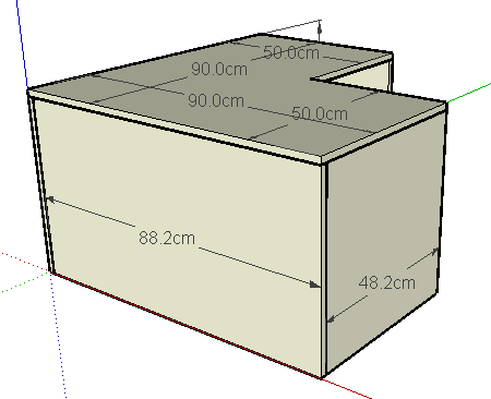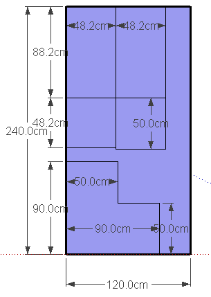 大大想做的轉角櫃形式是否如下示意?如猜測沒錯,應該在B&Q就可以買到4呎x8呎的木心板...並裁切如下示意~~組裝示意沒有這樣做過~~不曉得轉角的地方是否會有重心的問題,各人感覺最好是加些支撐~~是可以用螺絲起子慢慢鎖低~~只是會很累...板跟板間最好先用白膠or木工膠膠合後再鎖螺絲會比較牢固...以上~~個人淺見供參考^^認真的傻瓜 wrote:想要請問若是要製作這...(恕刪)