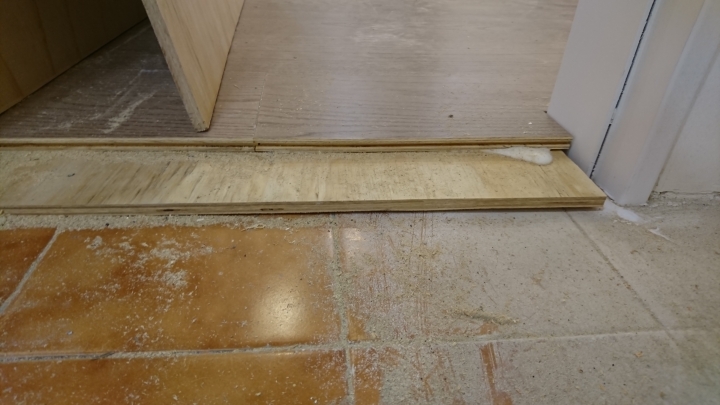 好接下來最下面鋪最薄的PVC布就好,鋪好上面釘夾板,然後直接上地板!