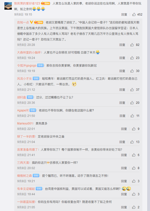 alexlin1 wrote:用嘴炮攔截嗎 解放軍(恕刪) 粉紅韭菜不會因為一個海峽兩岸就停止擴散的 跟 大媽一樣這是胡錫進的微博底下的評論都是牆內人的反應牆內邏輯清楚的人不少這些台灣粉紅們比中國人還愛中國